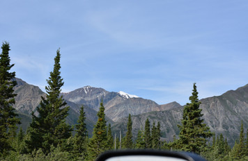 We travel along the Alaska Highway with the snowy mountains on our right.