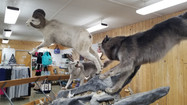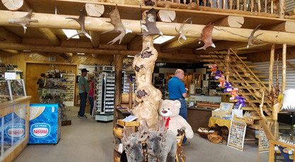 We go next to the All Alaska Gifts behind the Visitors Center. There is a large moose on display. We walk inside and there are many taxidermy animals on display. The furs are amazing to feel. There are very expensive, some up to $800.00.