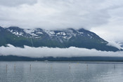 We arrive in a light rain. We see seals and seal lions off shore. The mountains across the Sound are layered with patches of snow and clouds.