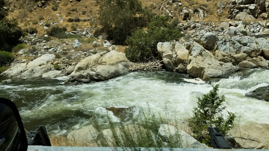 We drove through Kernville to enter Sequoia National Forest on CA-99 and began a long twisty mountainous road with beautiful raging rapids along the road. There were so many National Forest dry camping areas along the road. To bring our camper would be too difficult and extremely scary. We did we some tent campers, Class C motorhomes under 30 ft and Class B Vans.