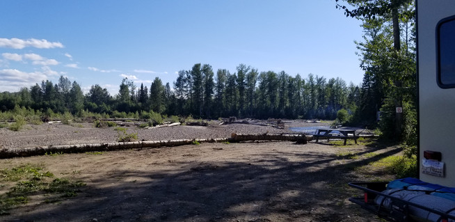 The campground is right along river. Speaking with regulars to the campground, the salmon swim up the river here, so the fishing is great. Occasionally a bear will wander in.